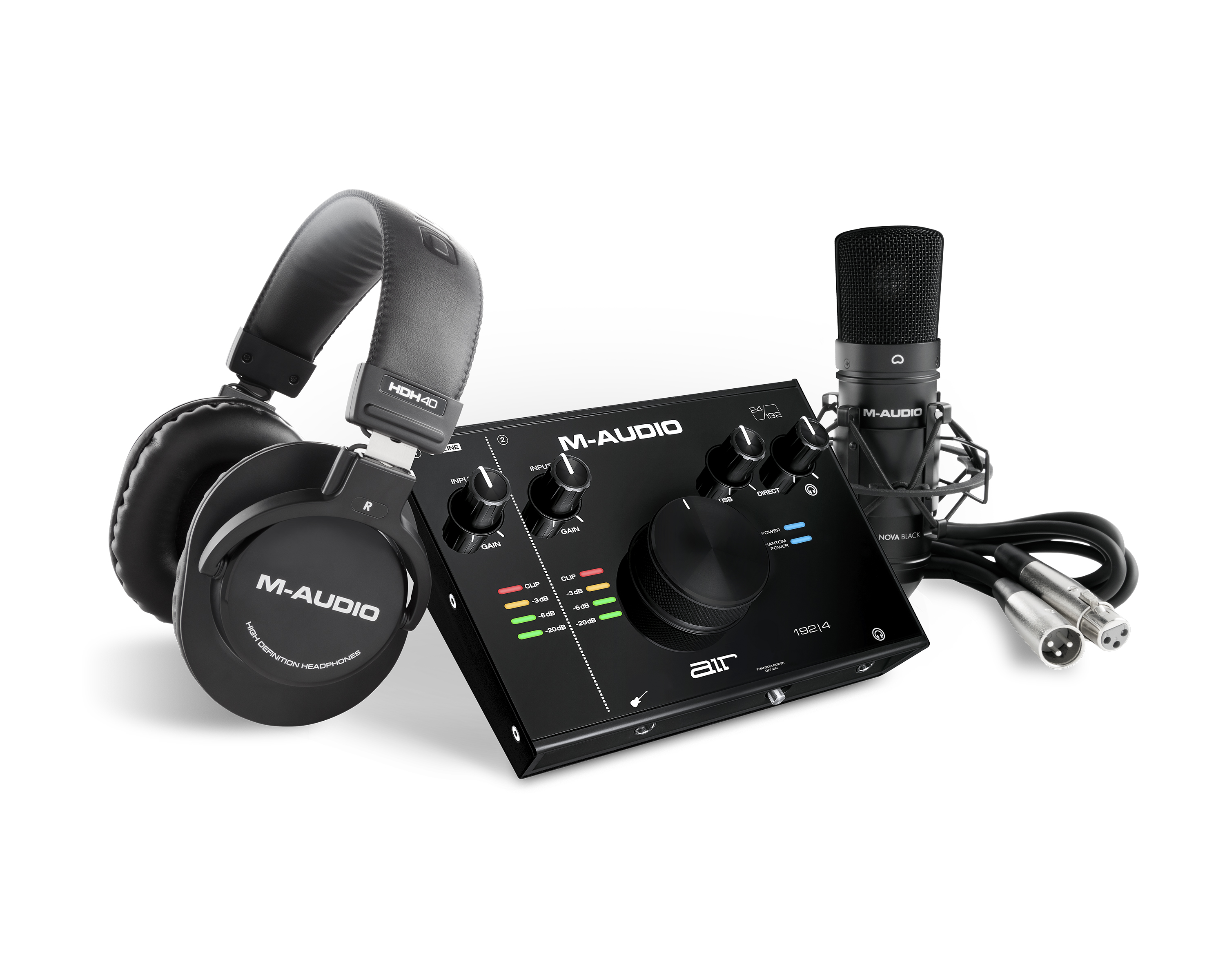 Enter the world of studio-based recording with the AIR 192|4 Vocal Studio Pro—the ultimate all-in-one solution for computer recording projects. Combining the critically acclaimed AIR 192|4 interface, HDH40 headphones, a Nova Black condenser microphone, XLR cable and the premium AIR Series Software Suite, laying down vocal tracks, recording electric and acoustic instruments and adding voice-overs to multimedia projects has never been easier. With the AIR 192|4 Vocal Studio Pro, the combination of high-performance hardware and easy-to-use software results in pro-grade audio capture for every recording scenario.