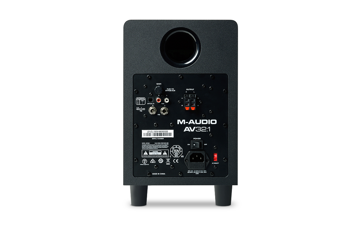 The AV32.1 subwoofer has an internal custom-equalized amplifier with a down-firing, long-excursion 6 1/2 -inch woofer that delivers high-impact bass down to 36Hz (-3dB). Completing the system is a compact and convenient remote control that powers the system on or off, adjusts the volume and provides a sub bypass option. This is also an ideal system for monitoring and mixdown use. The two speakers deliver musically-accurate, detailed sound so you can clearly hear what’s on your mix, while the subwoofer bypass mode on the remote control enables you to do an instant A-B check of how your recording sounds with or without a subwoofer.