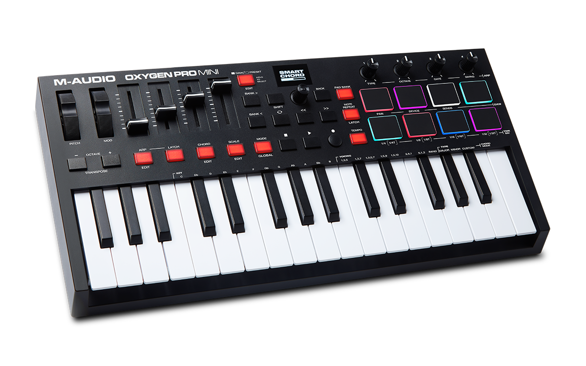 The Oxygen Pro Mini is a powerful, 32-key USB powered MIDI controller that allows you to create the music you want, wherever you want! The new Oxygen Pro controllers open up worlds of expression and creativity and make bringing your production ideas to life more seamless than ever. Taking feedback from users and artists alike, these controllers are the ultimate studio and live performance tools, allowing you to keep your focus on creating music—not programming your software. It doesn’t matter if you want to create music on the go or in the studio, the M-Audio Oxygen Pro series is perfectly flexible for your workflow.