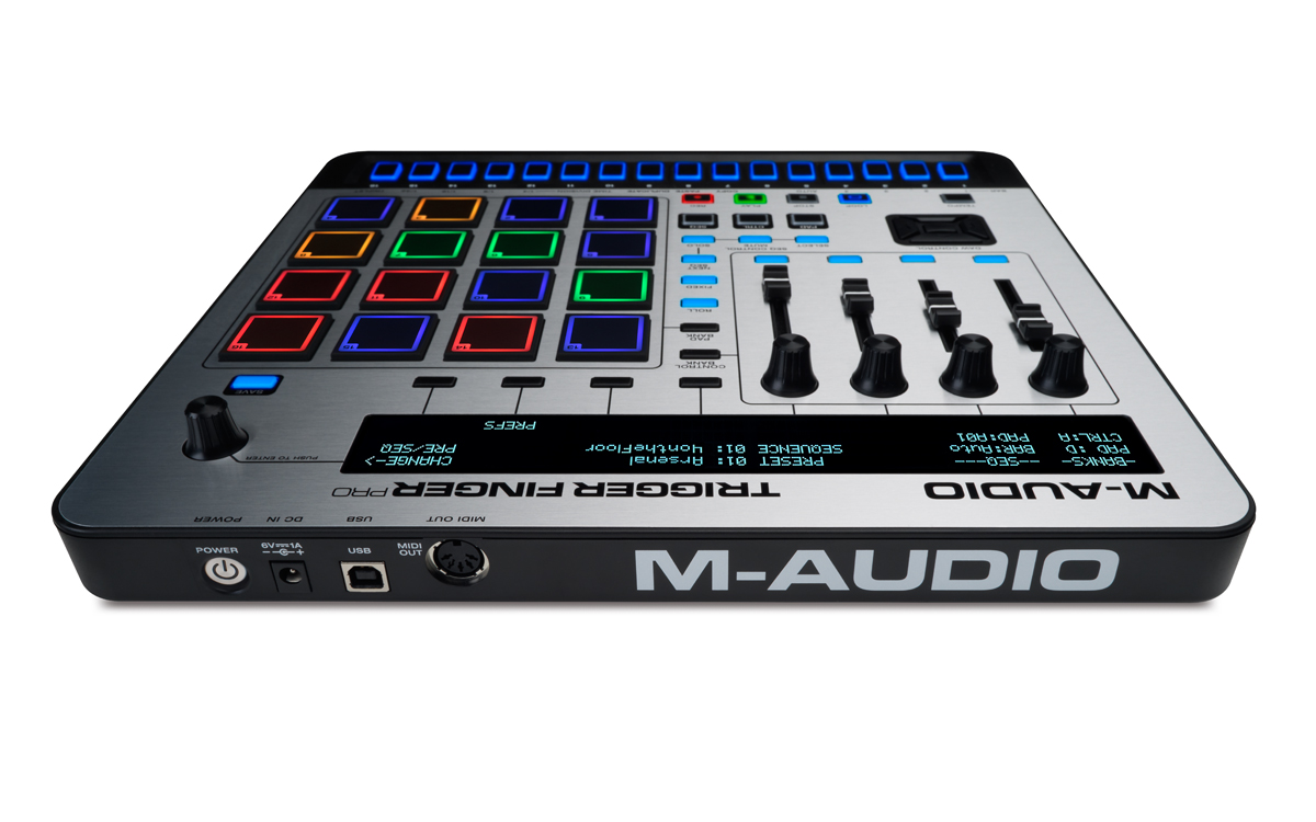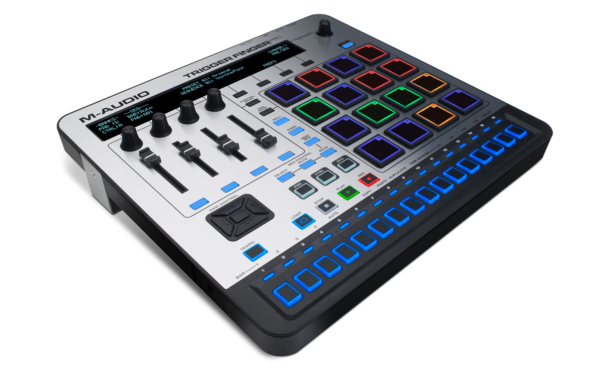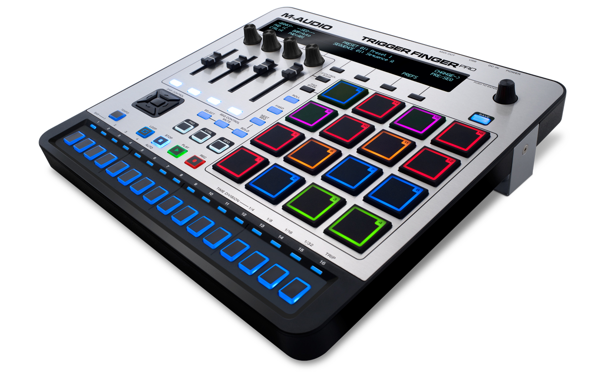 Offering unparalleled musical expression and software integration, Trigger Finger Pro is a fully loaded pad controller with a standalone step sequencer. Perform, produce, remix, and take command of any audio software with an array of hardware controls: 16 velocity- and pressure-sensitive RGB pads and 4 assignable knobs, faders, and backlit buttons offer comprehensive control of virtual instruments, DAWs, effect plugins, and more.